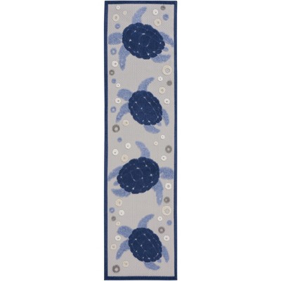 Ground your indoor or outdoor seating area in the stylish appeal of this outdoor rug from the Easy Care Collection. With a backdrop that showcases multiple flatweave styles, enhanced by a raised Moroccan trellis pattern in navy blue, this contemporary rug adds an appealing sense of depth to your surroundings. Place it in your living room, dining room, entryway, or favorite outdoor space such as the patio, porch, or deck for an instant style boost. Machine-made from durable, low-shed fibers that are easy to clean, making this a great choice for all seasons spent outdoors. Hand washable outdoors: rinse with a hose and air dry.