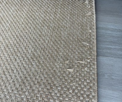 This rug was for use indoors as an easy care alternative to a sisal or natural fiber rug. The overall effect is what I was going for but the rug itself has a design defect (?) and has a lot of strands throughout that come loose and have to be clipped off. I vacuum regularly without the beater bar on and it still pulls and I still have to clip or pull the loose strands out every week or so. It’s in a bedroom so fairly low traffic and we don’t have pets. If I didn’t do this maintenance regularly it would look very shabby, six months in. I needed a large rug (10x14) for the space with a certain vibe and this one had the look I was going for and was affordable. I wouldn’t choose it again and will have to replace in the not too distant future.