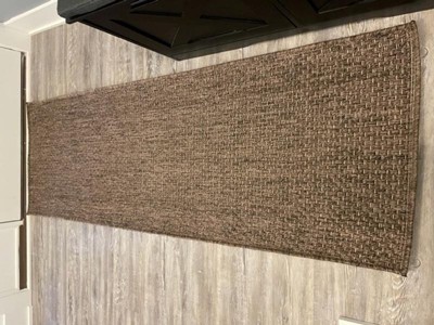 I bought this rug in a brown runner. Love the slight basket weave pattern. The It hides dirt well and goes with almost any room colors! I would only suggest a more non slip grip underneath but otherwise love it!