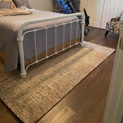 Searched long and hard for new living room rug before finding this one at Target. It's soft, neutral colors and looks contemporary. And it stays in place over our wall-to-wall carpet. Great price on sale and everyone, including our dog, is very happy.