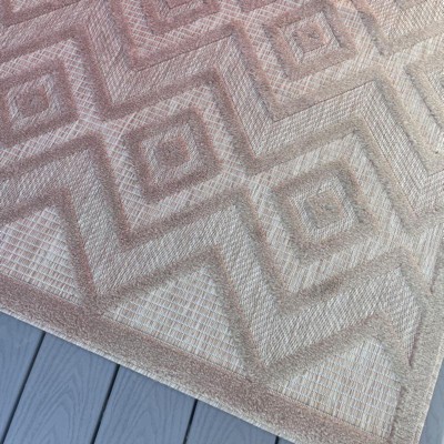 I wanted a replacement coral rug for under a pergola in our backyard. This rug looked great when unrolled, but after 3 months in partial sun, it is completely faded. Do not buy if it will be in the sun - doesn’t last. The picture shows the colored part where the coffee table covered vs sun exposed bleached rug!
