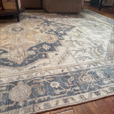 Really happy with this rug. It has a worn-in, vintage look that gives my living room a warm and cozy vibe. The colors are soft and pretty, and it stays in place without sliding around. Great quality for the price.