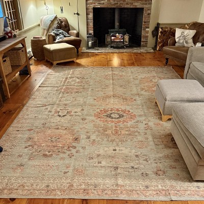 - TIMELESS STYLE: This washable rug showcases classic patterns with an artfully weathered effect that adds heirloom appeal to traditional, farmhouse, or cottagecore décor.