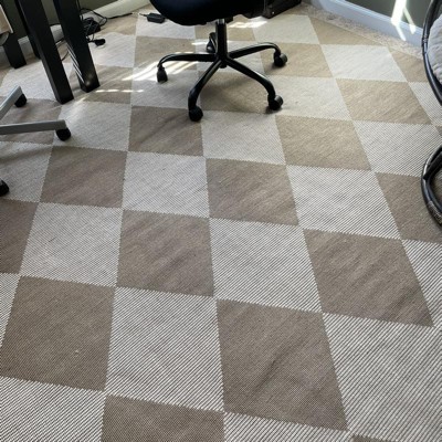 Do not sleep on buying this rug! It is SUCH a great value. Very high-end diamond pattern design, but at a great price point. It feels like thin jute material (so is not soft), but looks beautiful indoors and serves its purpose aesthetically. Little jute smell that will air out and improve with time. Gives major Studio McGee vibes and looks amazing as a neutral rug to place in a space with colored walls.