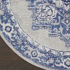 Rustic meets chic in this transitional area rug from the Whimsicle Collection. Inspired by 17th century Persian artistry, scrolling florals surround a classic center medallion design. On-trend grey, blue, and ivory tones are a versatile complement to French country, boho chic, and farmhouse styles of décor. This low-profile design is machine made of soft, easy to clean polyester fibers.