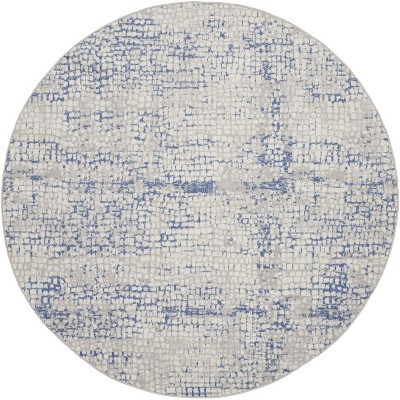 Define your space with this classic yet trendy area rug from the Whimsicle Collection. Oversized globally inspired motifs in neutral ivory and blue are woven onto a soft grey base for a versatile foundation in any room. This modern area rug is machine made of low profile, easy to clean polyester fibers.