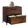 No one likes an unorganized office space. Create the storage and organization that your home office needs while adding a touch of the style that you love with this 2-drawer lateral file cabinet from the Nova Loft® collection. This lateral filing cabinet features two large drawers with full extension slides that can hold letter or legal-size hanging files for increased organization options. An interlocking safety mechanism allows only one drawer to open at a time. The spacious top surface of this 2-drawer filing cabinet provides you with additional space to store and display various items like a wireless speaker, work binders, decorative plants, and framed photos of your family and friends. This wood lateral file cabinet has a place for all your things! This legal-size filing cabinet is finished on all sides for versatile placement throughout your home—it will look polished from every angle. Finished in Grand Walnut® and detailed with a durable, black metal frame, this lateral file cabinet is everything your home office needs and more.