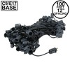Novelty Lights 100-foot green wire stringer (e17) intermediate base for incandescent and C9 LED bulbs is perfect for creating your stunning holiday lighting extravaganza. Our C9 strings can be used indoors and outdoors for lighting up your roofline, fenceline, trees, and windows. Our C9 strings are made with 100 high quality sockets with each spaced 12” apart and 12" lead wires. This string is not connectable end-to-end meannig the max run is this continuous 100 foot string. Each string comes with a 8 amp fuse with 1 extra fuse included inside the male plug. Bulbs are sold separately.