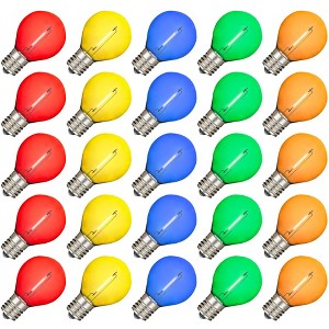 Save money and energy using our ultra bright warm white LED plastic filament G30 globe bulbs. Perfect for replacing old inefficient 5 watt incandescent candelabra base bulbs at your backyard, restaurant, patio, or outdoor patio living area. These warm white E12 LED G30 globe bulbs only use 0.6 watts per bulb and have a 10,000 hour bulb life making these perfect for permanent applications using ourcommercial grade light strings. These led bulbs are shatterproof plastic and are the most durable and energy efficient G30 LED bulbs. These LED bulbs will pay for themselves with the money you save on you electric bill. Our bulbs are sold in packs with 25 bulbs and are great for indoor and outdoor use.