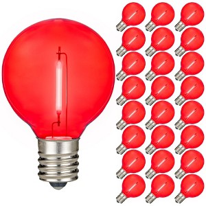 Save money and energy using our ultra bright warm white LED plastic filament G40 globe bulbs. Perfect for replacing old inefficient 5 watt incandescent candelabra base bulbs at your backyard, patio, restaurant, or outdoor patio living area. These E12 LED G40 globe bulbs only use 0.6 watts per bulb and have a 10,000 hour bulb life ow making these perfect for permanent applications using ourcommercial grade light strings. These led bulbs are shatterproof plastic and are the most durable and energy efficient G40 LED bulbs. These LED bulbs will pay for themselves with the money you save on you electric bill. Our bulbs are great for indoor and outdoor use.