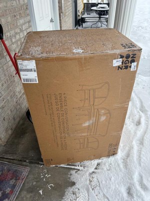 Meet The Novogratz Ava: The social butterfly of outdoor furniture! Ava is the epitome of chic outdoor living, a 4-piece conversation set. With her French blue wicker accents, she brings a touch of European sophistication to any patio or garden. Her comfortable cushions invite you to sit back and relax, making her the perfect host for any gathering. Ava's metal wood grain coffee table is not just a piece of furniture; it's a centerpiece for conversations. Ava ensures that every moment is cozy and inviting. Just like a true friend, Ava is built to last. Her sturdy construction means she can withstand the elements, while still looking fabulous. She's always ready for spontaneous get-togethers, rain or shine. Ava fits seamlessly into any outdoor setting. Whether you have a modern balcony or a rustic backyard, she adapts effortlessly, adding a touch of charm and comfort wherever she goes.