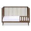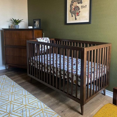 - Mid-century modern convertible crib can be used 3 different ways: as a baby crib, toddler bed (with guardrail) or daybed. 4 adjustable mattress positions with an open slat design for easy monitoring.