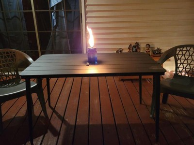 [This review was collected as part of a promotion.] I received this product for free from Influenster in exchange for an honest review. The table is a strong steel. But only weighs 33 pounds. Easy to move while still being durable. Perfect outside table. Easy to put together.