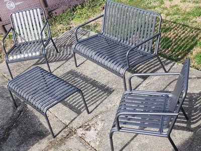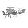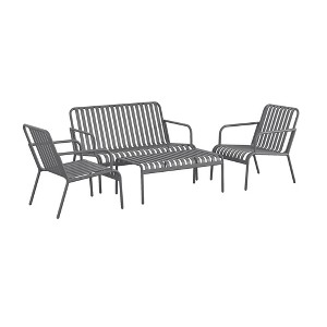 Ola loves entertaining, no matter the occasion! Whether it's a casual breakfast, sharing a drink with friends, or family together time, this 4 Piece Conversation Set by Novogratz is sure to be the center of conversation. Ola features a sleek and sturdy steel construction made for entertainment and fun. This set includes a loveseat, two armchairs and a coffee table, all in one convenient package. No need to wait for multiple deliveries or cartons! The weather resistant steel frame ie perfect for withstanding the elements, but can easily be used indoors as well. With its linear and modern design, Ola will make your backyard, patio or garden the place to be.