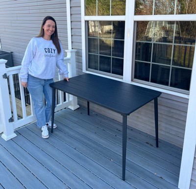 Use this April 50" x 29" Rectangular Dining Table by Novogratz for all entertaining needs. April is an entertainer that loves having friends over for a game, chat, or some gossip. Ideal for both indoor and outdoor use, this rectangular table is great for hosting dinner parties with friends and family or dining al fresco in the sunshine and fresh air. No matter the occasion, April is here to serve all your hosting needs! This trendy dining table is available in a modern charcoal color to breathe new life into all backyard or home décor aesthetic. Constructed using durable powder coated steel and weather resistant materials helps this table withstand outdoor elements and has a 100lbs. weight capacity rating. With minimal assembly required and tools provided, April is seamless to put together and virtually ready to use right out of the box. Create your dream dining arrangement for entertaining and everyday use!