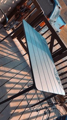 [This review was collected as part of a promotion.] I received this product for free from Influenster in exchange for an honest review. The table is a strong steel. But only weighs 33 pounds. Easy to move while still being durable. Perfect outside table. Easy to put together.