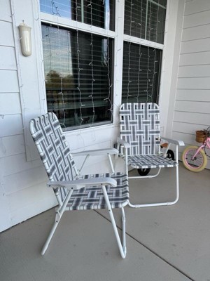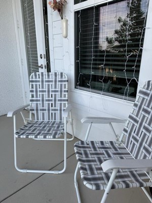- Built from durable, weather-resistant white powder coated steel and gray & white striped nylon straps