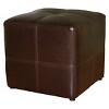 This small but sturdy cube ottoman will add a sleek, sophisticated look to your living space. With bonded leather panels stitched together for added flair, you will find the ottoman to be multifunctional as an example of great design, sturdy as a footrest, and well-built enough to use as a stool for extra seating.