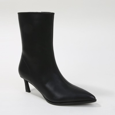 A refined pointed-toe stiletto ankle boot featuring a synthetic leather exterior and cozy warm lining, designed for polished daily elegance.