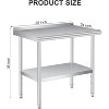 NSF Certified Stainless Steel Work Table, Bilayer Table with Adjustable Undershelf ,Arced edge,with Back panel