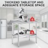 Meet the highest standards of hygiene with an NSF-certified, commercial-grade stainless steel table. The non-porous, corrosion-resistant surface prevents bacterial growth and is built to withstand the rigors of any professional or home kitchen, ensuring lasting durability and safety.Maximize your kitchen's efficiency with a fully adjustable undershelf. With three different height settings, you can easily customize the storage space to accommodate tall appliances, stack supplies, or create an open area for larger items, keeping your workspace perfectly organized.