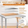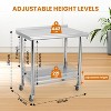 Meet the highest standards of hygiene with an NSF-certified, commercial-grade stainless steel table. The non-porous, corrosion-resistant surface prevents bacterial growth and is built to withstand the rigors of any professional or home kitchen, ensuring lasting durability and safety.Maximize your kitchen's efficiency with a fully adjustable undershelf. With three different height settings, you can easily customize the storage space to accommodate tall appliances, stack supplies, or create an open area for larger items, keeping your workspace perfectly organized.