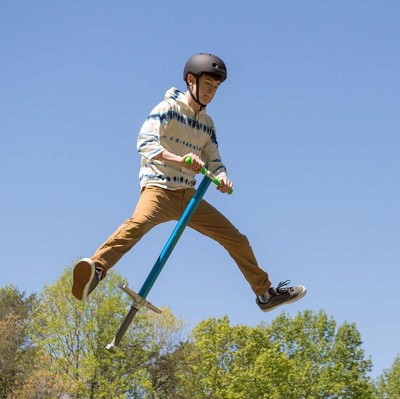 Combining the classic pogo form for traditional bouncing with unparalleled sport level performance and durability, these pogos provide hours of fitness training along with trick and stunt skill development. • Smooth action progressive spring for maximum bounce and wider weight range • Replaceable Sphere tip for improved balance, stability and professional performance • Pressed steel footplate (Grom) and welded diamond footplate (Flight) provide superior durability while performing advanced tricks and easily stand up to the abuse • Comfortable and safe rubber hand grips