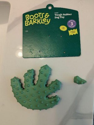 My two dogs (4 yrs old & 7 months old) love this toy! Durable and easy for them to carry around, one of their favorites! It will start to crumble over time from frequent use, however both of my dogs are super chewers so I don’t mind buying a replacement every few months. We have been very happy with all the Boots & Barkley rubber toys and own almost all of them!
