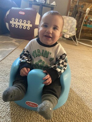 My son absolutely loves his nuby floor seat and so do I. The material is very soft and squishy so I don't have to worry about his bottom getting sore. The safety straps hold him in perfectly with his rambunctious self. I love how easy it is to wipe clean and use.