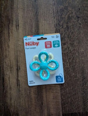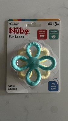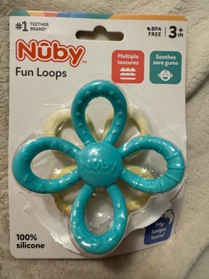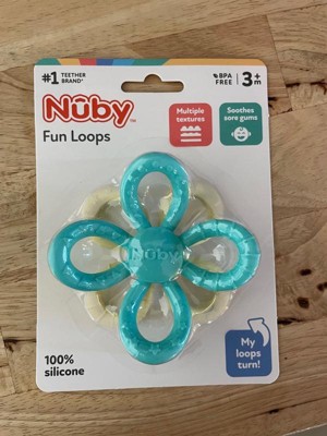 [This review was collected as part of a promotion.] The Nuby Fun Loops Teether is a popular teething toy designed for babies to soothe sore gums. It features a colorful, looped design with multiple textures to engage babies’ senses and aid in their motor skill development. The loops are easy for little hands to hold, and the various surfaces provide relief during teething. Parents often appreciate that it’s made from safe, BPA-free materials, and it’s easy to clean. However, some users have noted that the loops might be too large for very young babies to grip comfortably. Overall, it’s well-liked for its durability, safety, and effectiveness in soothing teething discomfort.