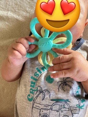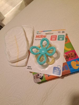 Teething is rough, but with Nuby's Fun Loops Teether, it doesn't have to be. Our flower-shaped infant teething toy is a fun and interactive teether for babies ages 3 months and older that helps to soothe your baby's uncomfortable gums. This Nuby teething toy is made of 100% soft silicone for sensitive, tender mouths, and provides teething relief without being rough on delicate gums. The bright colors, fun shape, and interesting textures appeal to your little one's sense of sight and touch. Toss this baby essential in your baby's diaper bag or stroller so you always have teething relief on the go. Our Nuby baby teething toys are thoughtfully designed for little hands. At Nuby, our goal is to help make the teething process just a little easier for you and your little one!