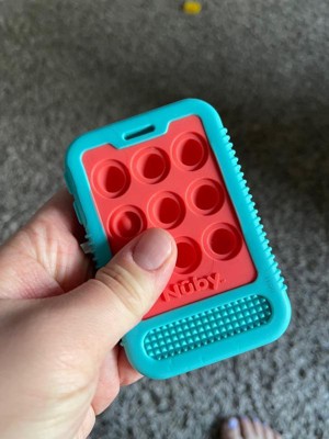 [This review was collected as part of a promotion.] I love this Nuby Giggle Bytes Sensory Popper teething toy for my infant. The popper bubbles are a little hard for my little one to push down on her own, but my 3 year old is always happy to help! I appreciate the slot near the top to put a tether on, but wish this would have come with one.