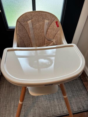 [This review was collected as part of a promotion.] What high chair dreams are made of! This high chair has a chic and high end look to it, while being made for moms! The material is so easy to wipe down and the different removable parts such as the chair insert & top of the tray come off easily for stress-free washing! I also love how this grows with your baby! My son is just outgrowing a high chair, so the feeding chair option is great so he can sit right up at the table with us! I am also excited to utilize it as a toddler stool once he gets a little older.