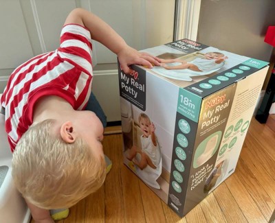 I bought the My Real Potty Training toilet for my son and he really likes it. He seems to like having a mini version of our toilet, is very comfortable sitting on it, and it’s very sturdy. The potty lifts out easily to empty it and it’s designed in such a manner that there are no nooks and crannies that need to be cleaned out. It’s very easy to wipe clean. It’s also very cute, so points for that!