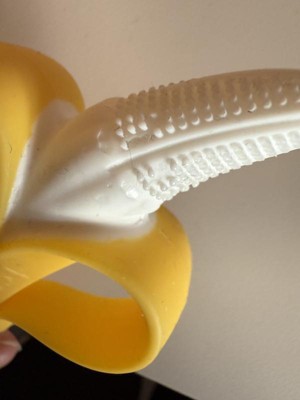 Thank you for taking the time to leave a review about your experience with our silicone teether. We truly value your feedback as it helps us improve the quality of our products. Please contact us at mail@nuby.com for any further assistance.