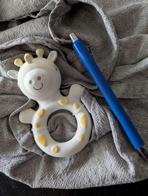[This review was collected as part of a promotion.] I added a pen for reference for comparison in size. Great lil Nubby Giraffe Teether relief for my lil one. Soothes his aching gums and provides much needed relief for me too. Easy for my baby to grasp with his lil fingers. East to clean in soap and water.