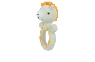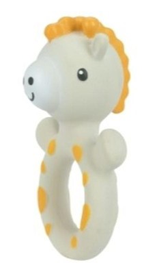 This teething ring features an adorable giraffe design that captivates both babies and parents. Made from soft, natural rubber, it is gentle on sore gums and easy for little hands to grasp. The durable construction ensures it withstands hours of chewing, while its lightweight design makes it convenient for on-the-go use. With multiple textures to explore, this teether is a delightful addition to any baby's toy collection, providing comfort and engagement during teething.