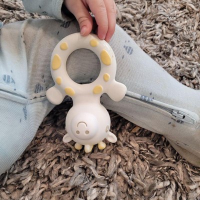 [This review was collected as part of a promotion.] This teething ring is the cutest! I love the giraffe design and how soft it is. This is perfect! I love that it has plenty of places for baby to grab onto. Very highly recommended!