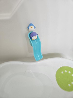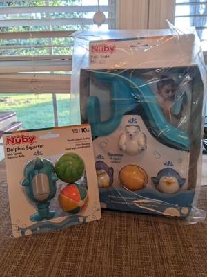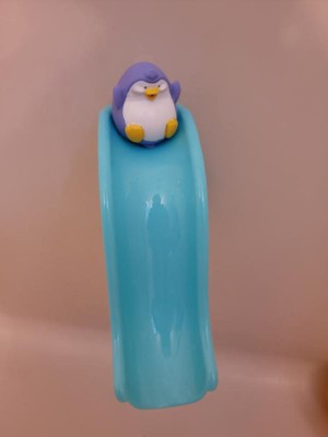 My little man is not a big fan of bath time, but the Nuby Penguin Slide Squirt Bath Toy made bath time more enjoyable for him! He loves sliding the ball, penguin and polar bear down the slide- he always goes "woo"!!! The suction cups conveniently attached to our wall. He also loves just playing with the animals and ball outside of the bath! Such a cute, fun toy!