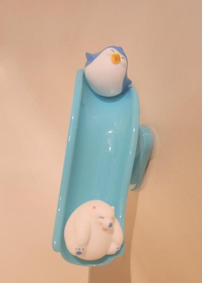 Really cute bath toy! Suctioned to the wall well and didn’t pop off. I like that the slide can move. Kept my one year old and three year old entertained!
