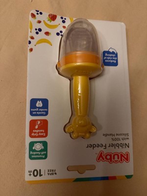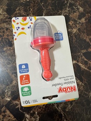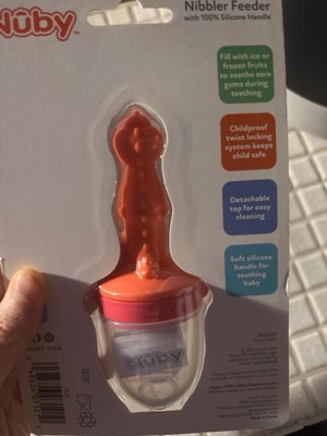 [This review was collected as part of a promotion.] My baby loves the new nuby silicone feeder! It’s easy to fill with first foods to try. So far we’ve tried frozen berries that have worked great. I also love that the handle doubles as a teether. It’s easy to clean and has held up well through cleaning so far!