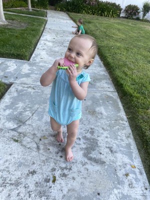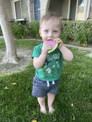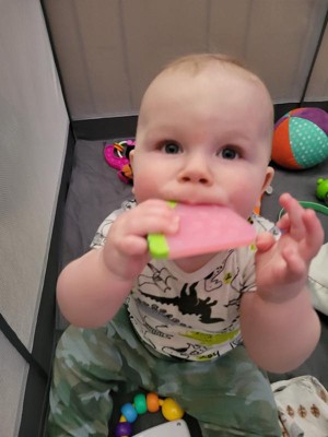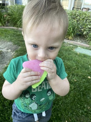 Absolutely love this Watermelon teether! I stopped buying the teethers that have the liquid inside and now I only buy silicone ones. This one is perfect for summertime! Super cute, great gripping area for baby and compact size makes it easy to take on the go. Another awesome Nuby product!!
