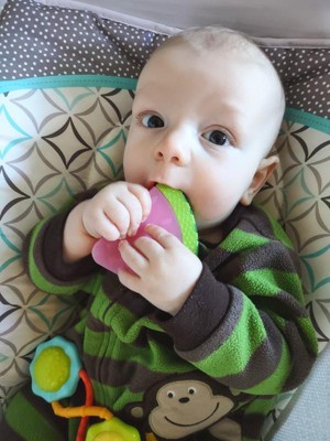 My babies both love this, so I will need to get another. I love that it has different textures and it is so cute for spring and summer. It is softer than other teethers, so I think it would be really nice when put in the fridge or freezer.