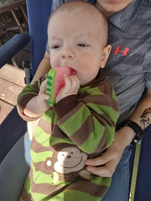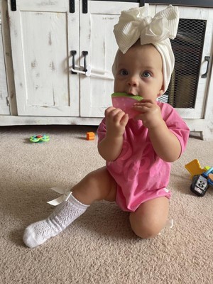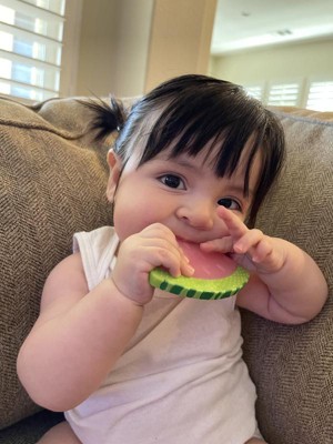 Such a great teether. My little one is getting some morals and it's just chewing on everything. She loves the different textures of the watermelon!
