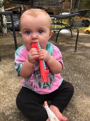 Such a great chew toy for small toddlers to hold on to and chew on while teething. Great colors and fun animal shapes! Bonus - it comes with a cleaner inside of one of them. Highly recommend!