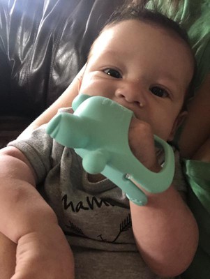 Having to put the child's hand into the teether is cumbersome. Would prefer if you could just hold the teether. It has a way for it to be around the wrist or upper forearm and not be too tight, but not a fan of that either. It’s silicone so very easy to clean. Love that it is dishwasher safe. Love the ears- best part to teeth on. Liked the teal color.