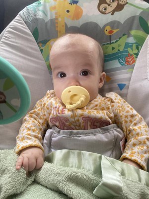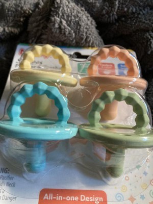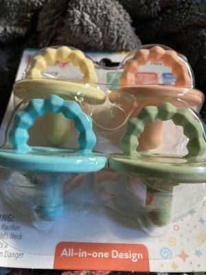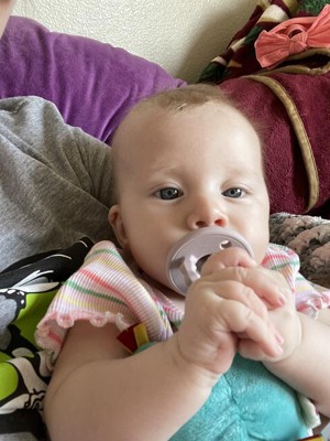 We got the 4pk as a gift and it's been hit or miss with baby girl. Sometimes if she's fussy enough she won't mind it but most of the time she gets frustrated with this paci because the nipple part is a little on the small side. The ribbed handle is definitely a hit since she shows signs of the teething process. She loves chomping down on the handle to soothe her gums.
