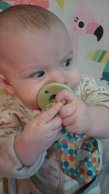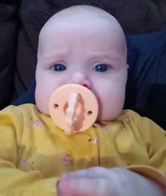 We received these pacifiers to review and our little one loved them! She is currently about to be 4 months and has really developed her hand coordination. She loves wrapping her hand around the handle to this paci and utilizing it to insert it in her mouth. She switches between these and the mam brand but currently the nuby pacifiers have been preferred