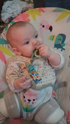These Work wonders with my four month old. She took to them so quickly and had no problem keeping them in her mouth. I like that it had a large handle. That way I could strap a holder onto it with ease. The colors are also a fan favorite I enjoy the combination.