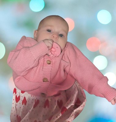 These are very cute. I love the diamond teether handles. My 3 month old has trouble keeping them in here mouth but loves the teether side, it’s the only pacifier she has been able to hold in her hand so far. I wish they had more of a bulb shape so they didn’t pop out of her mouth so easily.
